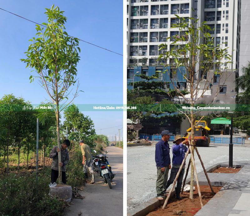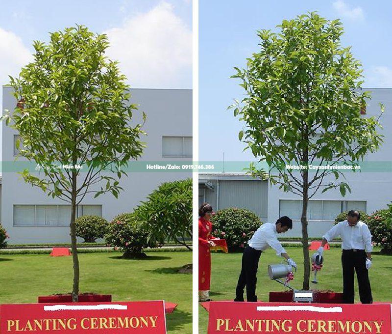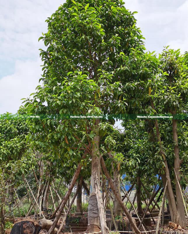 - Kích thước cây: Đường kính gốc từ 15-25cm, chiều cao từ 5-7mét. Tán cây thường xoè từ 2-4m – do lúc trồng sẽ cắt bớt cành lá, nên tán chưa lớn ngay. Sẽ chia thành 2 cỡ nhỏ trong đó: Là cây trung bình nhỏ với Dg=15-20cm; và cây trung bình lớn với kích thước Dg=20-25cm.